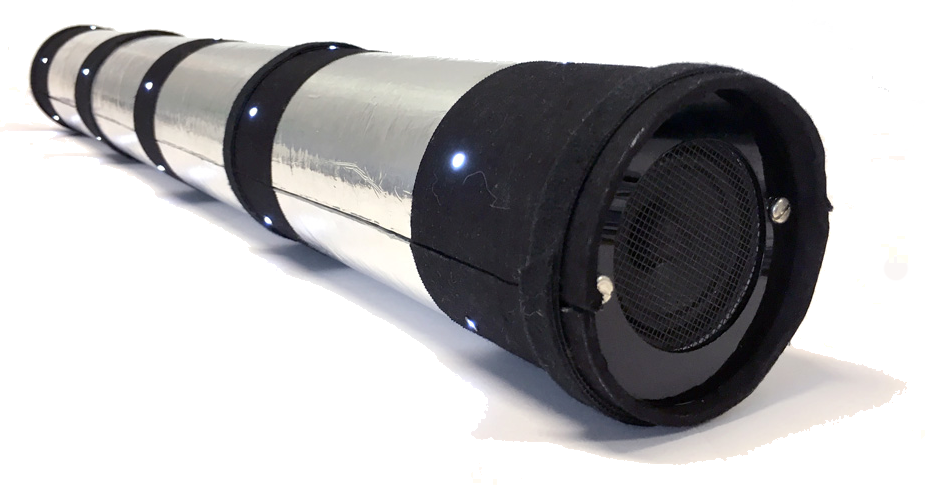 Considering the player’s body and incorporating curve were important aspects of MOAI, and these aspects influenced the physical design of Keppi. Keppi’s particular physical dimensions are a result of my desire to make something big enough that would encourage the player to consider their body in relation to it, and not appear to be a tool or toy. I also wanted the instrument to be visible to the audience from the stage. I chose a tube because I wanted Keppi to lend itself to be gripped with a hand, but I chose a wider tube to make it less of a baton and more of a cylinder.