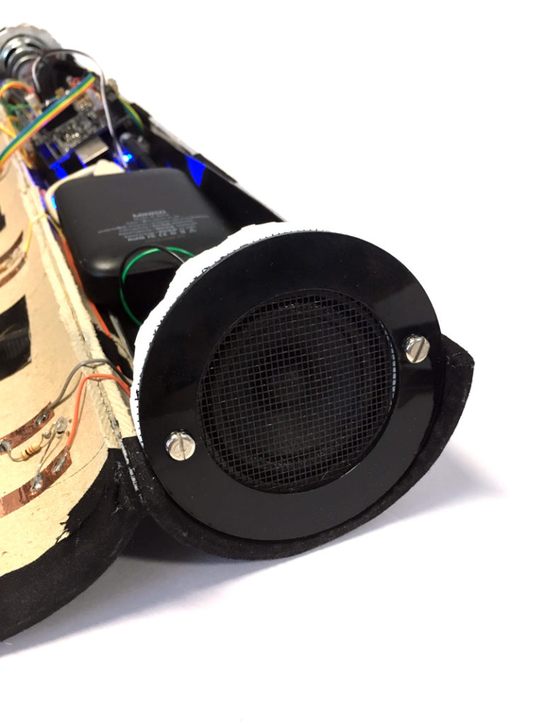 Keppi had some interesting unexpected features. Though I had spent a lot of time playing it during the design process, I had not understood its visual potential until I saw others play it on stage. Keppi’s appearance is understated, but quite beautiful, and by limiting the features, paying attention to the surface, and carefully considering the number and placement of the LEDs the result is intriguing but believable as an instrument, as opposed to an experimental device or toy. Keppi’s stage presence is more than the sum of a poster tube, athletic tape, and aluminium foil.