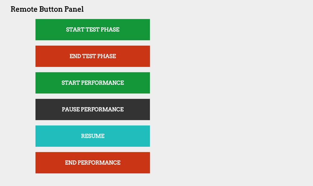 Metrix moves between these states via a remote control interface, operated by the study investigator. Here, the investigator can make the interfaces of all connected phones active or inactive by tapping a button. These button taps are also logged in the database under a user named `remote’, so there is record of when the performances were started and stopped.